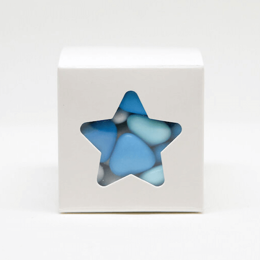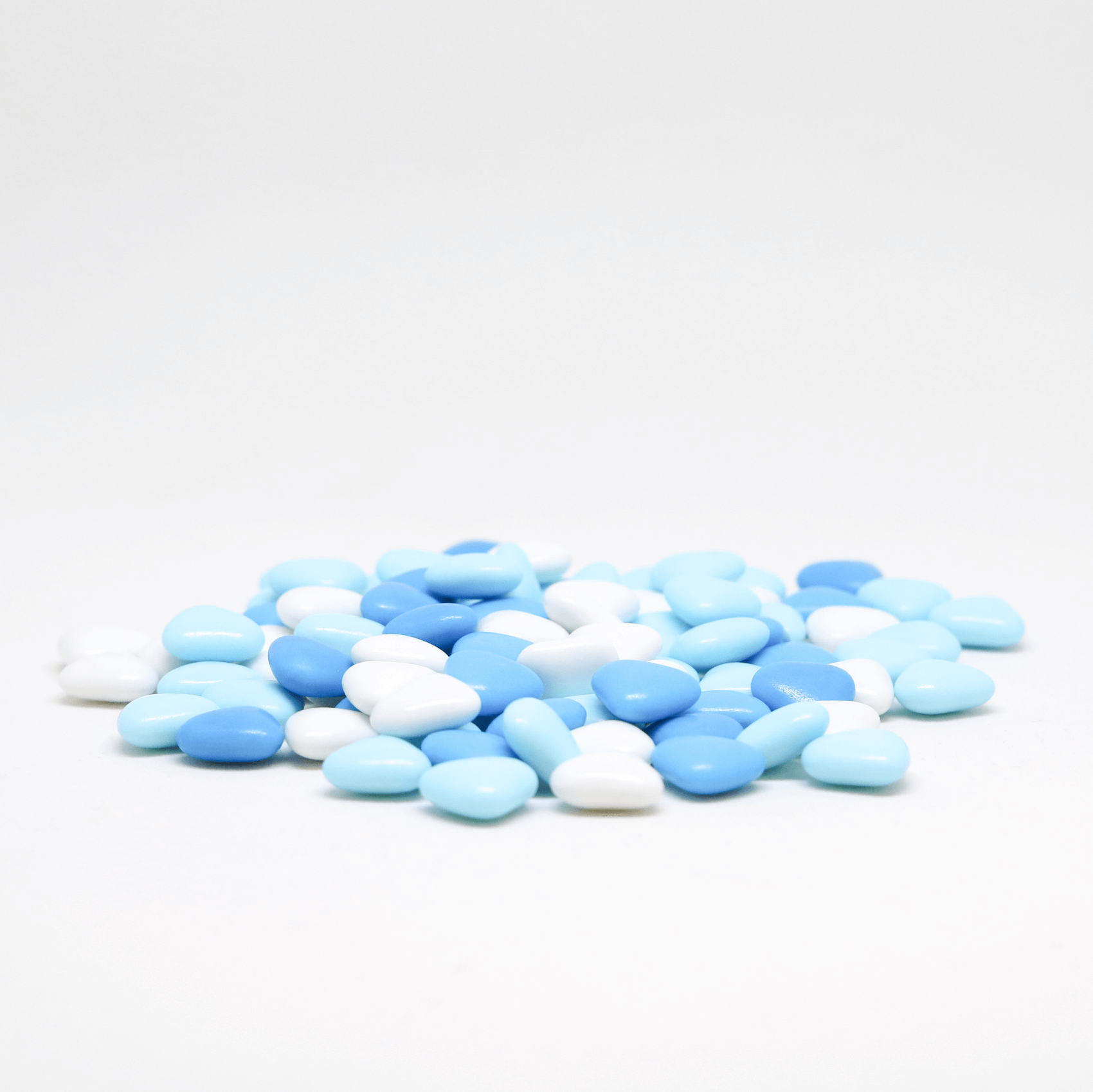 Kleine chocoladehartjes in witte en blauwe kleur. Superleuk om als doopsuiker te gebruiken bij de geboorte van een jongetje. Deze hartjes worden verkocht per 900 gram. Afhankelijk van de verpakking die je hierbij koopt, kun je zo'n 9-18 doopsuikers hiervan maken.