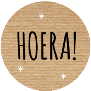 De kraftlook achtergrond geven deze sluitzegel een stoere en robuuste uitstraling. De tekst hoera geeft dit design een feestelijk tintje. Mooi bij onze kraftpapieren envelop.