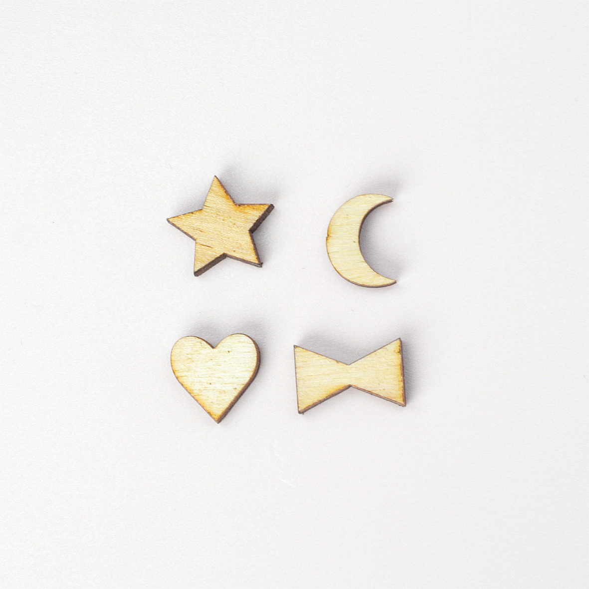 Sampleset van een houten hartje en maantje.