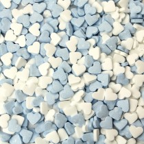 Blauw-witte fruithartjes, heel lekker! Gebruik deze als suikerbonen in het geboortebedankje van je zoon. Afhankelijk van de verpakking kun je hiermee ongeveer 7 tot 25 doopsuikers vullen.